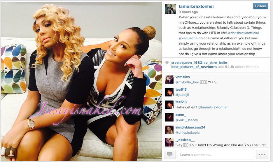 #whenyourgirlhasatalkshowinsteadofcryingaboutyouwhileONone… you are asked to talk about certain things such as A.relationships B.family C.fashion D. Things that has to do with HER in life! @chrisbrownofficial @karrueche no one came at either of you but was simply using your relationship as an example of things us ladies go through in a relationship!! I do not know nor do I give a hot damn about your relationship personally…. honestly and respectfully I’m VERY sorry if you BOTH were offended about our girl chat…. however you WILL NOT think its ok to come at GROWN women and talk to either myself or @adrienne_bailon as if u have EVER has us each in your bed at ANY point in our lives! (Maybe your mind is clouded) NOTE TO SELF: u are NOT my MAN or my DADDY so you got me completely FUCKED up!…(like your reputation) I’m not 20 nothing years old and I am fine with all 3 #1 tv shows and making my dreams come true with Love&War and now #letmeknow…which is on iTunes