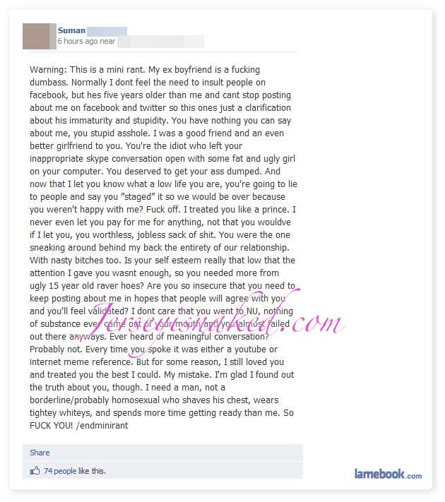 The posting of your personal business is only entertainment for your friends list and those who follow you. I am in a private room on Facebook and the woman up above’s photo was the post of the evening. Apparently this woman is having sex with the user’s husband. The Facebook user is asking others to share this mess.