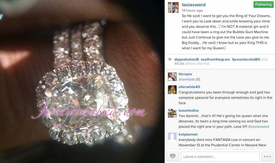 Fantasia Barrino took to Instagram to show off her massive rock husband or fiancee’ Kenny Taylor gave her.