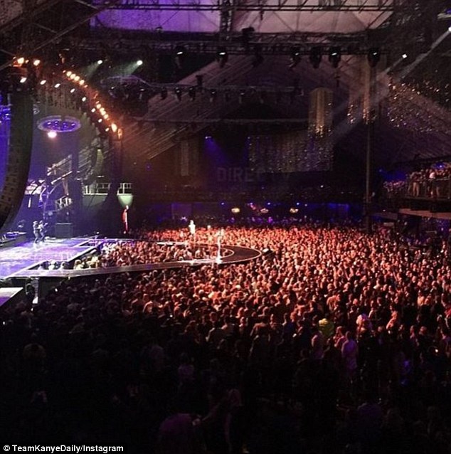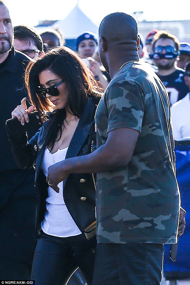 Kim Kardashian accompained her husband to the superbowl without daughter North. Fans snapped unauthorized selfies with the two and then Kanye performed. Here are the photos and video from the performance.