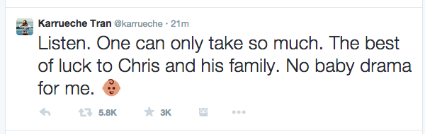 Karrueche Tran just confirmed that Chris Brown is now a father and she isn’t sticking around to be a step mom!