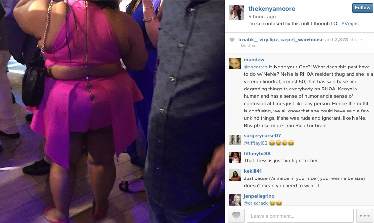 Kenya Moore knew by posting this photo that people would criticize this woman due to her level of fame. She basically posted it as if this person was a joke. I have a few questions of my own for Kenya Moore. Why do you need to understand her outfit?