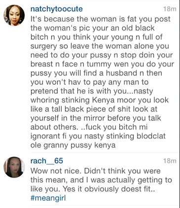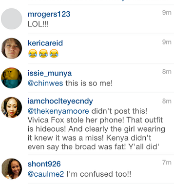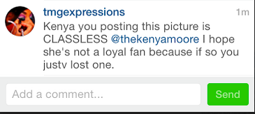 This is cyber bullying and honestly is punishable by the law. Obviously Kenya is dealing with her own demons if she has to post photos of other women in a negative way to make her feel better about herself. This is a sad display of maturity since Kenya is only a few years away from an AARP card. This is totally unacceptable.