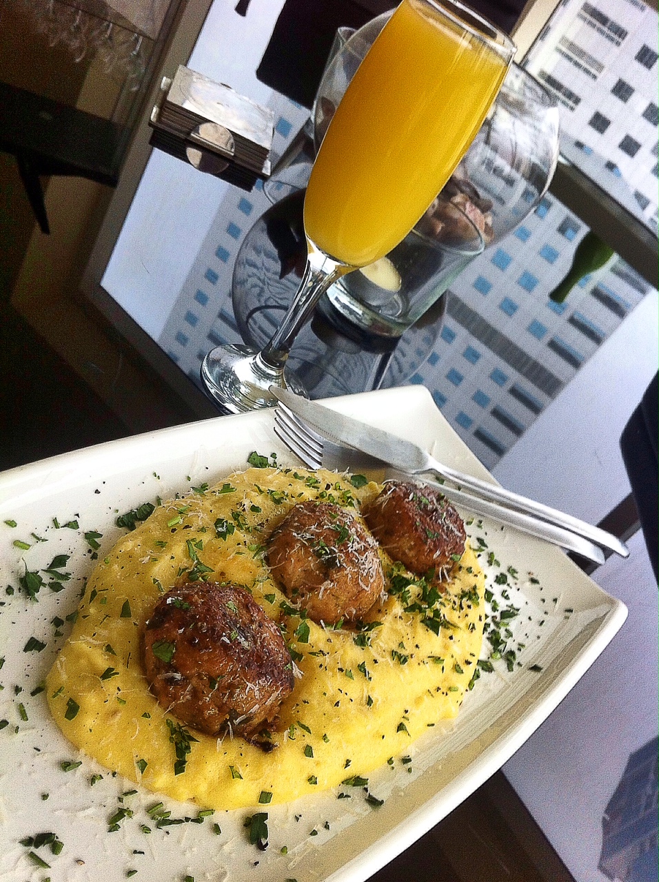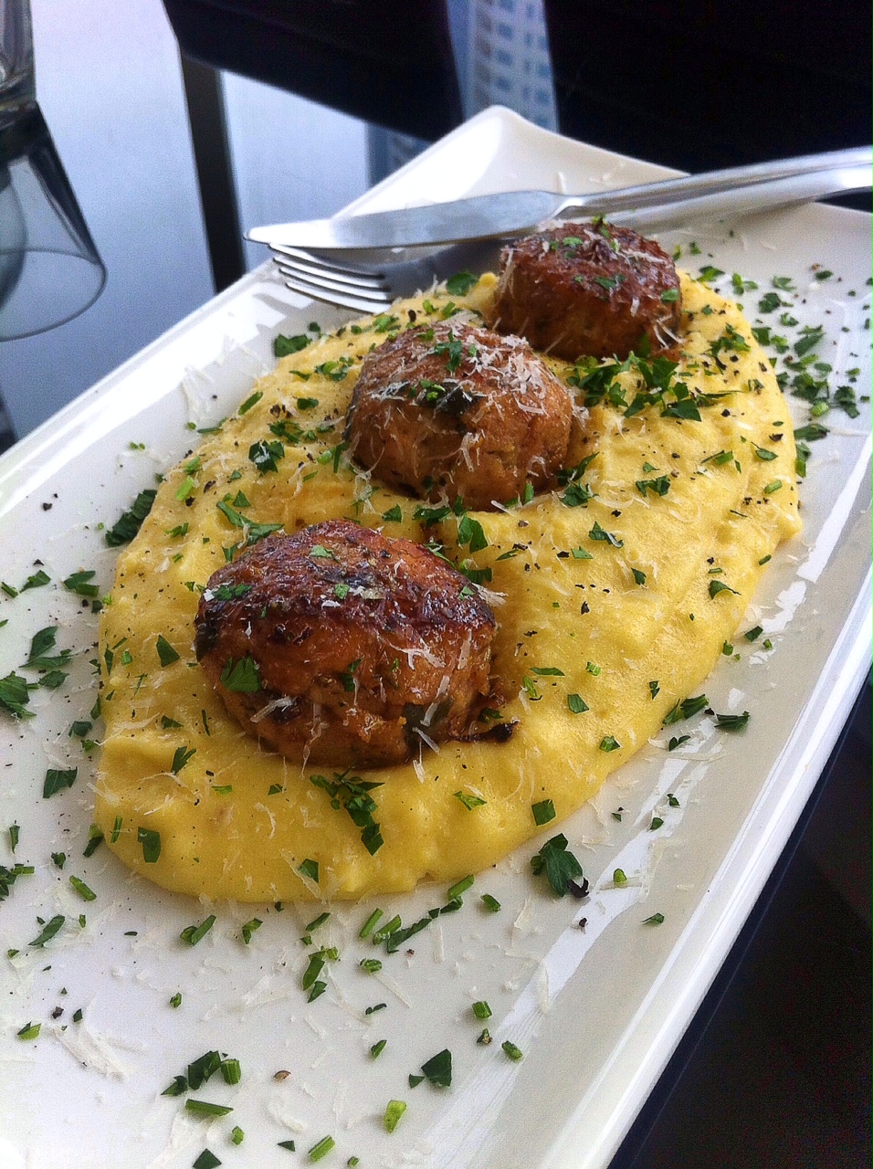 Then serve over a garlic-parmesan polenta bed and garnish with parsley.