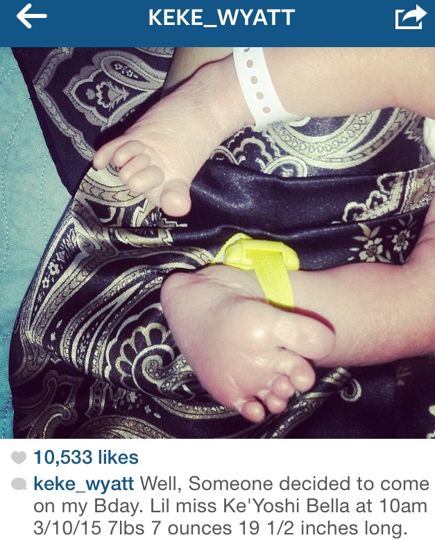 Keke Wyatt released Ke’Yoshi’s first photo via instagram. Her baby girl was born on her birthday. Keke Wyatt and husband Micheal Ford now parent seven children. Ford had a child from a previous relationship. Congrats Keke! Welcome to the world Ke’Yoshi.