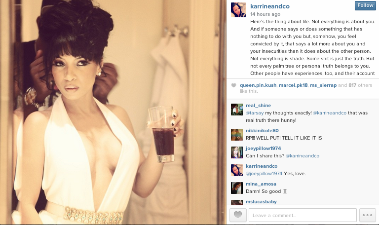 Karrine ended the feud with this last message which I felt took the cake. It was a really good read. I must admit. I completely agree with what she said. You can’t claim someone as if you are the only one when he is a man who is of the world. We all know what that means.