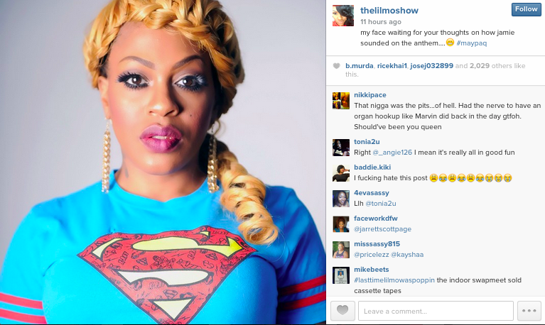 Lil Mo posted about Jamie Foxx’s performance last night during the Floyd Mayweather fight via Instagram and now she is getting roasted!