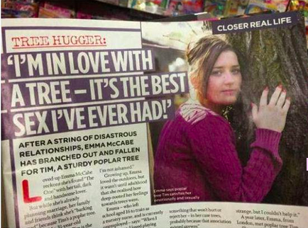 Closer Magazine did an interview with 31-year-old Emma McCabe who claims to be in love with a tree named Tim. Emma also mentions their sexual relationship!